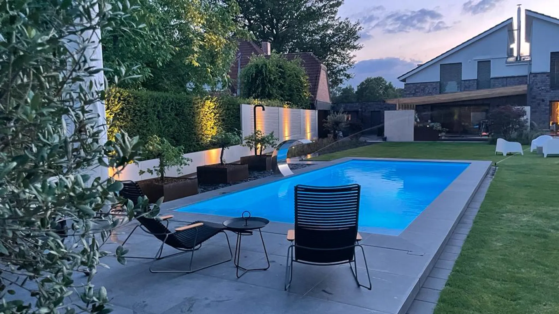 W przeciwieństwie do basenów skimmerowych, na ściankach nie odkłada się linia zabrudzeń na poziomie lustra wody. - Efekt wizualny premium